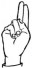На ћирилици написано ВИКТОРИЈА ЈОВЕЉИЋ састоји се из 16 слова [?]. Исписано ћириличном једноручном азбуком за глувонеме: